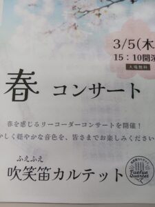 先日、吹笑笛(ふえふえ)カルテットさんによる、春のリコーダーコンサートが 開催されました🌸 今回でなんと4回目の開催となります! 動揺からクラシック、民謡まで幅広いジャンルの曲を演奏してくださり、アンコールを含めて 全1 […]